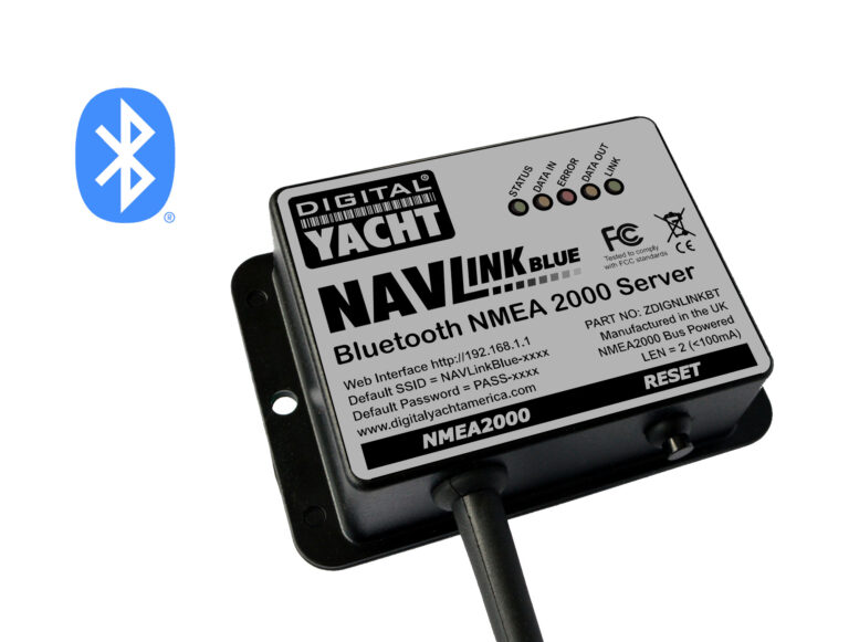 NavLINK Blue ist eine Schnittstelle für Bluetooth-Sensoren zu NMEA 2000, die von Digital Yacht entwickelt und hergestellt wird. Sie lässt sich problemlos mit drahtlosen Sensoren von Drittanbietern verbinden und liefert einen zertifizierten NMEA-Datenausgang für das NMEA-2000-Netzwerk des Bootes, unabhängig vom Hersteller.